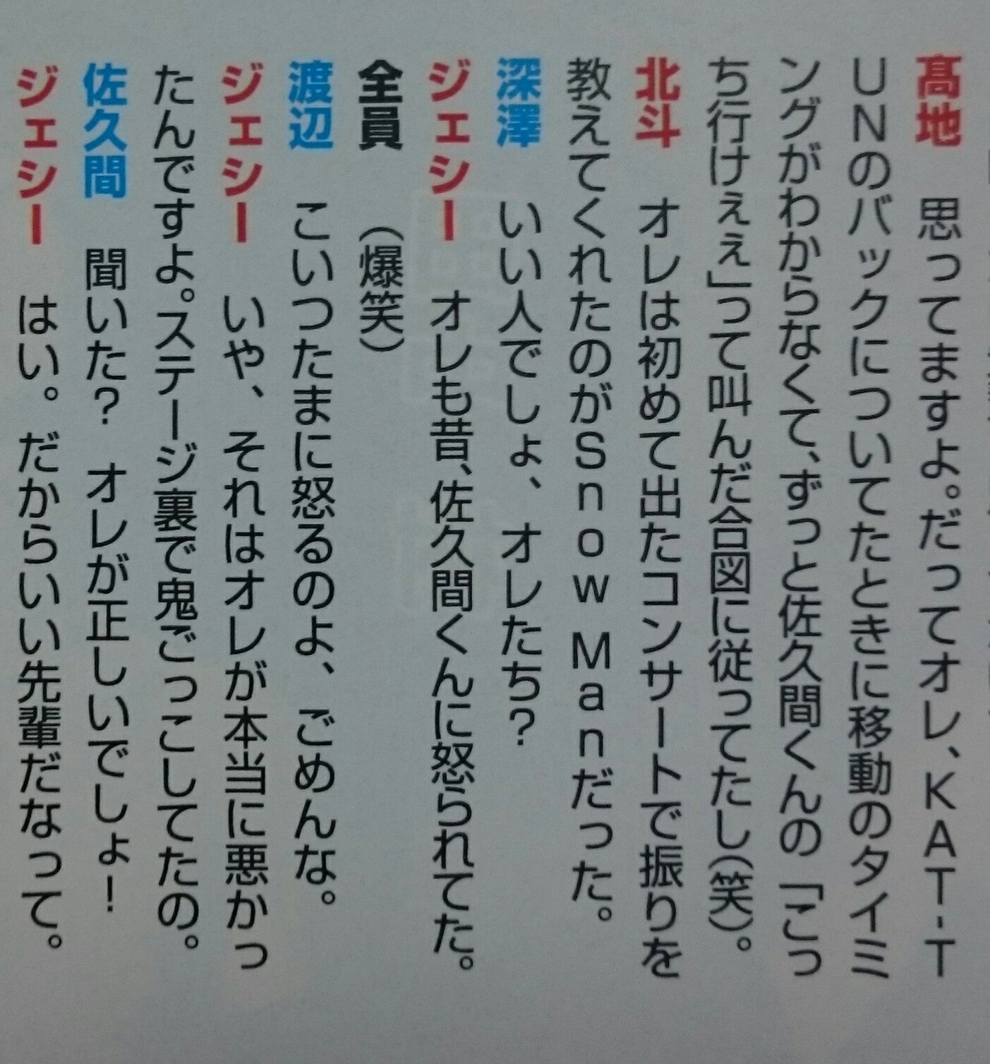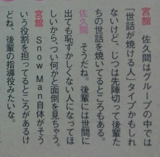 自分も「怖い先輩」と思われたかったようで、後輩から「SnowManの一員として怖かった」と言われて「よかった」と答えた事も!